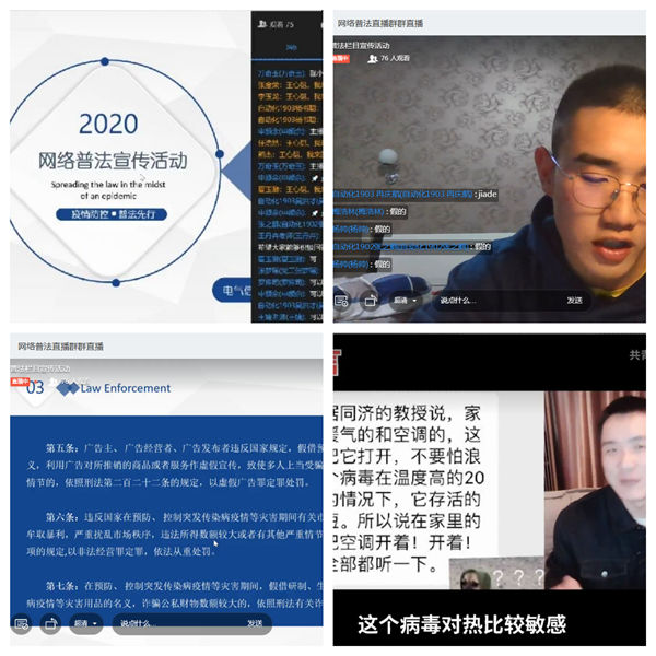 在这个不平凡的春节,病毒席卷我国,全国人民团结一致,全面战“疫”。但即使国家战“疫”形式如此严峻,依然有不明疫情实际情况的人员肆意散布谣言,引起社会恐慌。为了增强同学们的法律意识及分辨谣言的能力,禁忌书屋 于2020312日下午16:30以网络直播的形式举办了一场生动的“网络普法课”。1819级各班代表参加活动。