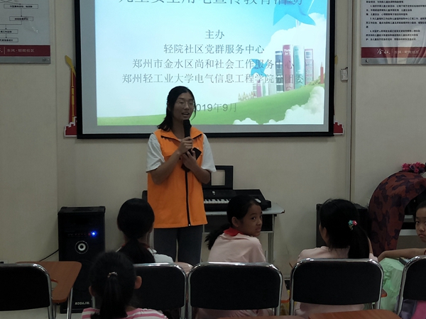9月28日下午,禁忌书屋 “阳光电气”志愿者服务队到郑州轻工业大学社区和附属学校进行义务清扫和安全知识讲解活动。