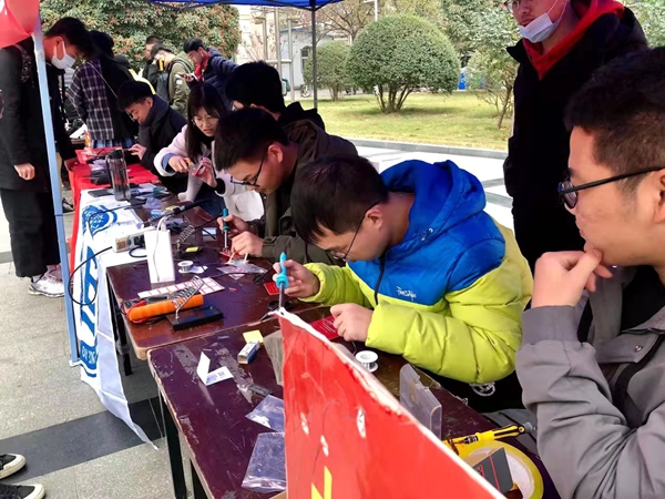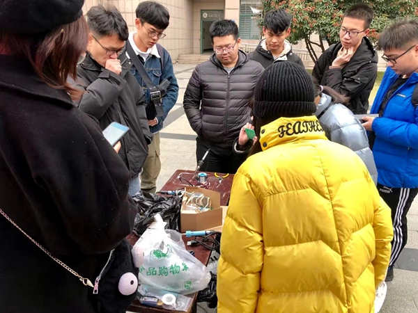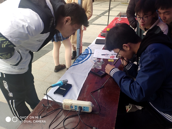 “他们挺厉害的呀,几分钟就把我这个电灯给修好了”,“是啊,我这个加湿器坏了好久了,没想到还能修好”听着同学们的议论,维修人员的脸上露出了灿烂的笑容,能够用所学的知识为同学服务,队员们的付出都是有价值的。在三个小时的活动中,双创工作室成员及两协会成员共维修小风扇、键盘、鼠标、电吹风等各种家电近20件,对于无法维修的电器,队员们会为同学们详细讲解其原理以及无法维修的原因。