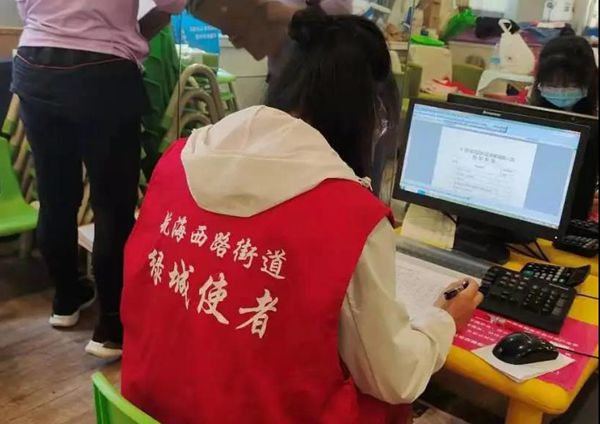 杨若琳,轨道2002班学生。目前在郑州市中原区航海西路街道办事处帝湖花园社区担任志愿者。在志愿中主要做的是登记健康码异常户主,对隔离户主进行信息登记,并且每日记录隔离户主的体温,为隔离户主送必备生活物品等。近期参加了帝湖花园社区的第二次核酸检测,在其中担任填报大数据的工作,核实隔离人员信息。在社区一众人的努力下,该次核检人数突破6000。
