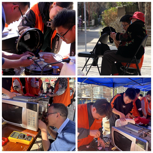 在轻院社区广场开展“学习二十大,志愿新时代”家电义务维修活动。校电子科技协会、校无线电协会共同参与此次活动。