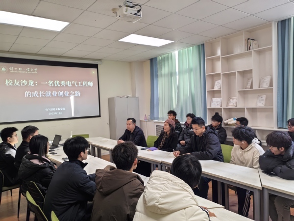 12月25日下午,禁忌书屋 在西二楼227室举办校友沙龙活动,邀请2003届电气工程及其自动化专业优秀校友、广东英瑞沃电气科技有限公司总经理赵艳女士返校,围绕“一名优秀电气工程师的成长就业创业之路”主题,与青年学生开展分享交流。活动由学院党委副书记刘振卫主持。