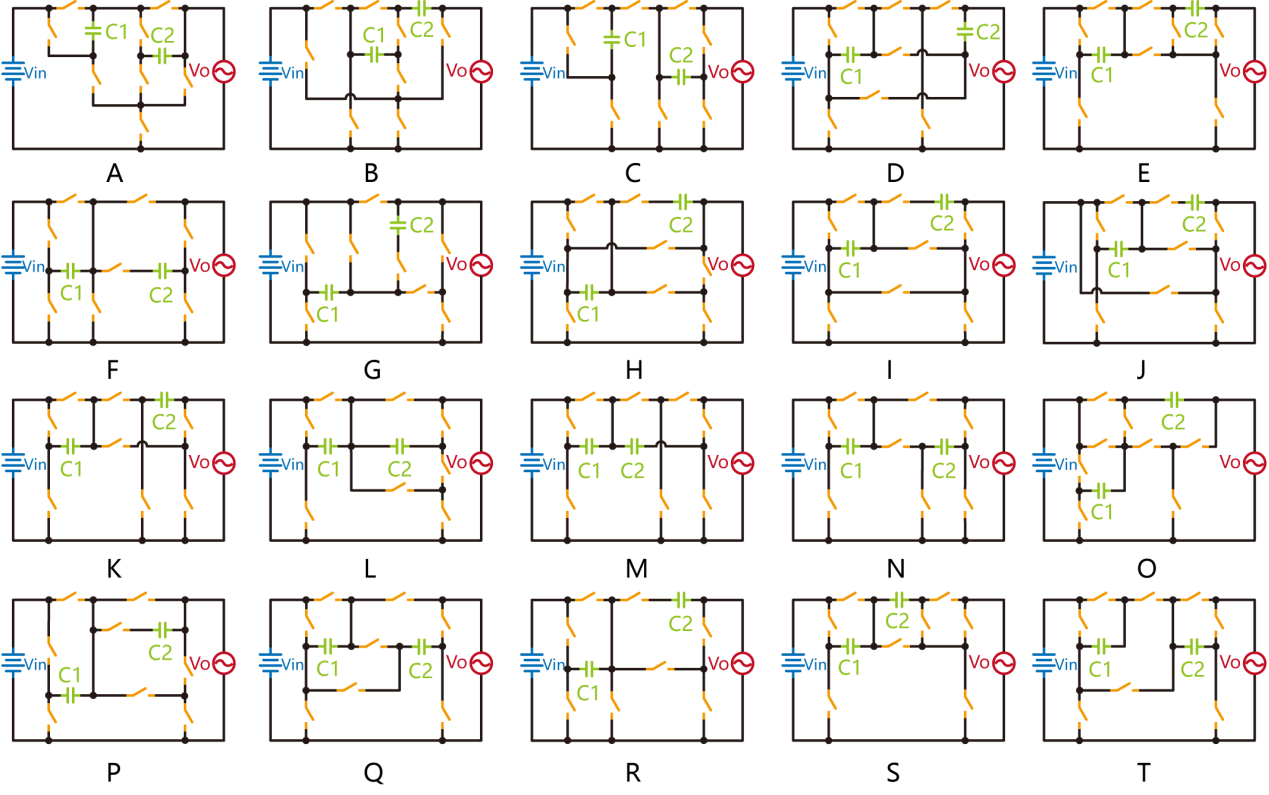 图2推导出的20种拓扑结构(其中A,B,C为新提出的拓扑)